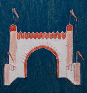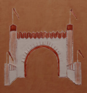 Poort 2: het Kasteel, olieverf op board, 30x31cm