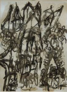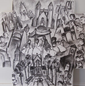 Processie in houtskool, papier 70x70cm
