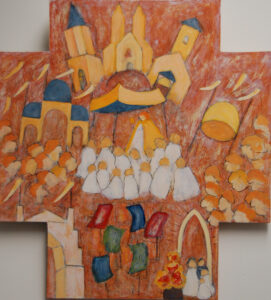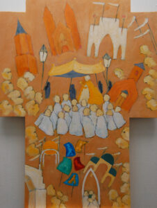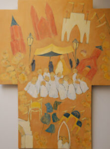 Sint Jans processie olieverf op paneel 54x60cm